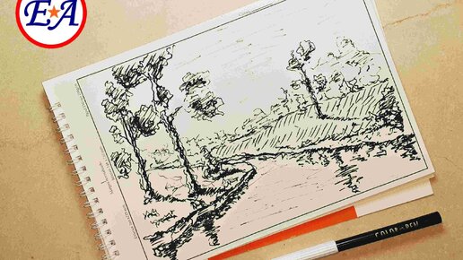 СУПЕР БЫСТРЫЙ и ЛЕГКИЙ Способ Нарисовать Лесной ПЕЙЗАЖ за 3 МИНУТЫ!!!