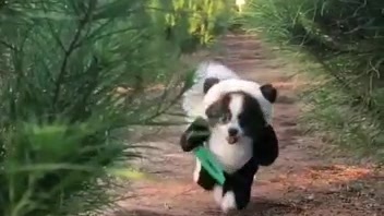 Собачка носит костюм, и хочет быть пандой