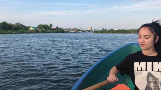 Первый раз плыву на лодке .На реке Дёма,Очень боялась глубины ,но спустя время немного привыкла .