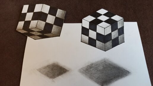 Простой 3Д рисунок чёрно-белых летающих кубиков
