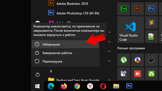 Включаем гибернацию, чтобы компьютер быстро включался.