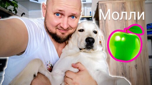 Лабрадор Смешно и Забавно Играет и Ест Яблоко