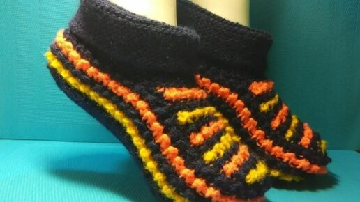 ТАПОЧКИ С ОТВОРОТОМ СПИЦАМИ#298