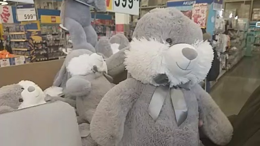 В Ленту к 8 марта завезли огромных плюшевых зайцев по 599 р. Показываю их размер