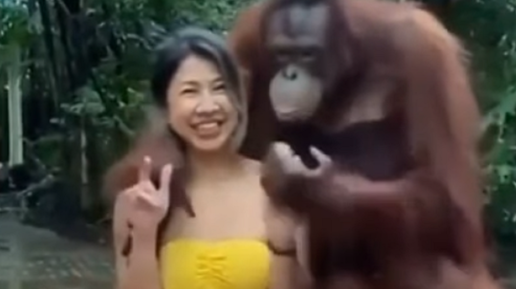 Как шимпанзе ухаживает за девушкой
