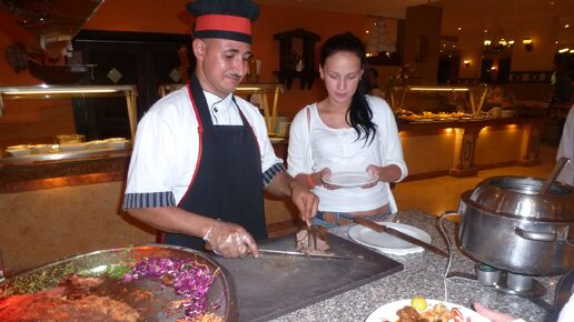 В отеле Египта дочь пустили поработать на раздаче в ресторане - не справилась.
