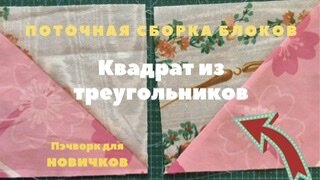 Лоскутный блок квадрат из треугольников. Пэчворк для новичков.