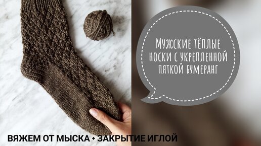 МК Мужские тёплые носки с укрепленной пяткой бумеранг || Вязание носков от мыска || Закрытие иглой