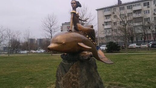 Девушка с дельфином. Новороссийск. Осторожно! Видео приносит удачу в путешествиях.