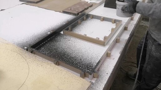 Делаем цельнолитую угловую столешницу, с литой мойкой и обработанным отверстием под варочную поверхность и смеситель
