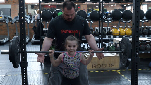 Семилетняя тяжелоатлетка жмет штангу 34 кг при весе 23 кг