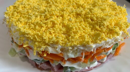 Салат с корейской морковкой, ветчиной, огурцом и сыром - приготовила и не пожалела