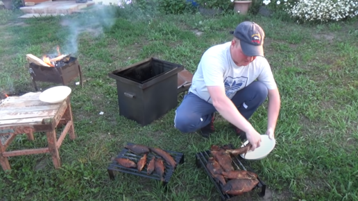 Коптим наших окуней на даче.Паримся в бане. Окунь горячего копчения.
