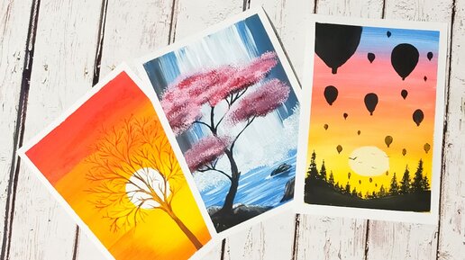 Рисуем открытку с водопадом без навыков к рисованию. Видео Мастер класс
