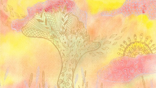 "Золотое дерево" - медитативное рисование с узорами на акварели