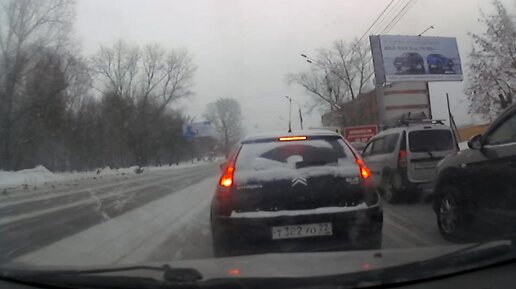 Хмурое морозное утро. 5 минут движения в пробке