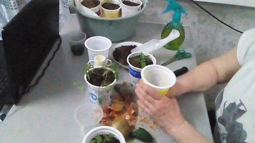 Пикирую переросшую рассаду помидор. Алоэ, картофель и другие овощи использую при пикировке для питания корней