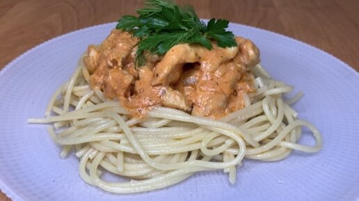 Куриное филе, тушёное с овощами в сметанно-томатном соусе. Быстрый и вкусный ужин из простых продуктов.