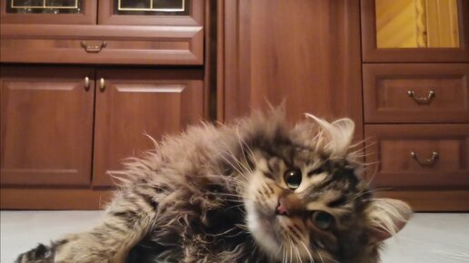 Такого ленивого кота вы ещё не видели. Кот охотится за мышкой лежа.)