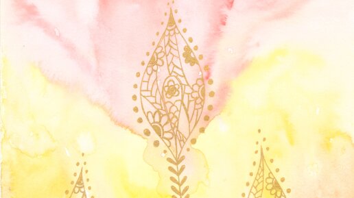 "Золотые цветы" - расслабляющее рисование акварелью и золотистой ручкой