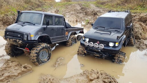 Pajero MST на радиоуправлении против Axial UNIMOG в гряземесе