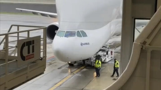 Супер необычный грузовой самолёт Airbus Beluga: посадка, погрузка и разгрузка