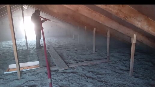 Утепляем чердак эковатой.