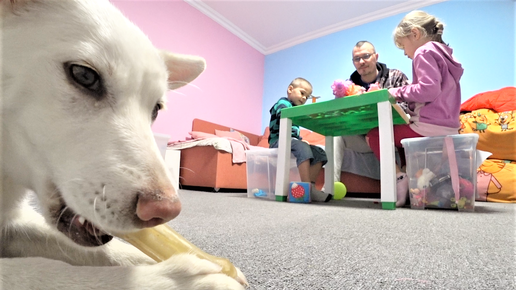 Как папа, дети и собака Белла собрались поиграть в Лего. Грабли Лайф