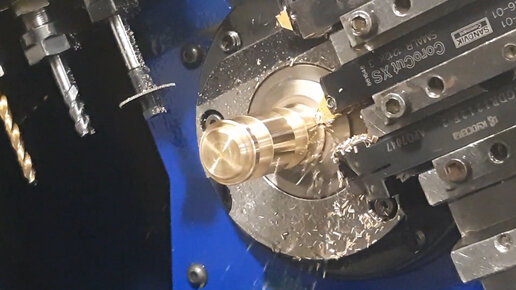 Работа токарного станка с ЧПУ - изготовление изделия с перехватом, обработка с двух сторон