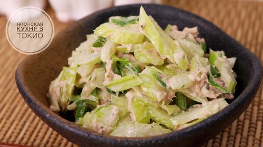 Простой салат из сельдерея и тунца. Японская кухня в Токио.