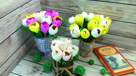 Конфетный букет из гофрированной бумаги Своими руками. Крокусы.