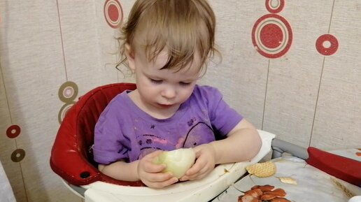 1,5 года. Дочь пробует репчатый лук 🧅