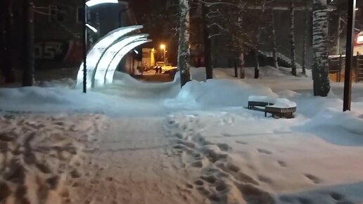 Дивногорск ночной и снежный. Памятник А. Е. Бочкину