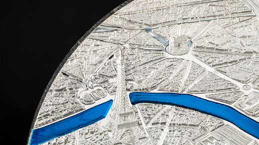 Tiffany Art: Париж с высоты птичьего полета на монете из чистого серебра