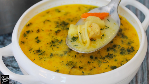 Вкусный куриный суп с лапшой