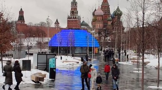 Прогулка по парку Зарядье в Москве от Красной площади зимой