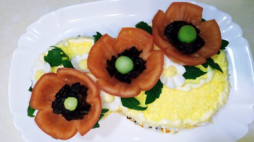 Не знаете как украсить салат на 8 марта? Смотрите видео.
