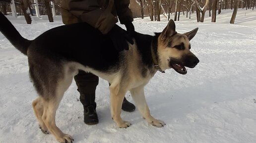 Щенок напуган - его укусила взрослая собака. Он осторожничает, хотя очень хочет поиграть
