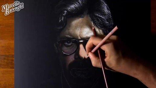 Художник гиперреалист рисует портрет. Выглядит как качественное фото.