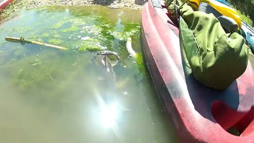 Змея пытается съесть сома