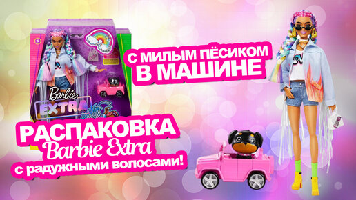 Обзор на куколку Барби Экстра с радужными косичками!