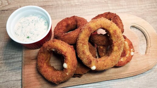 Всегда готовлю такую закуску под просмотр фильма. Луковые кольца с сыром, быстро и вкусно