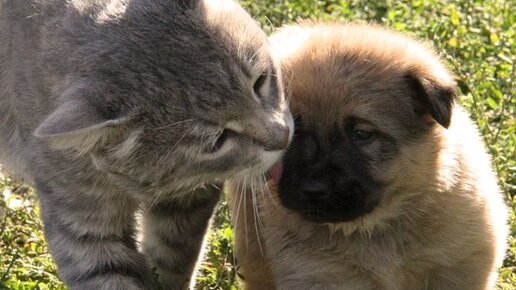 Далее: Котик и щенок, смешное видео, ч. 2-милые бранятся, только тешатся