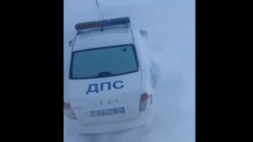 Автомобиль ДПС заметает снегом. Сильная метель. Брошенные на дорогах машины.