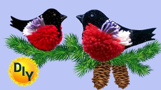Снегирь из ниток. Птица своими руками без затрат. Очень просто и быстро. Снегири улетели.