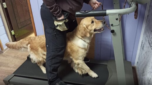 Две собаки осваивают беговую дорожку