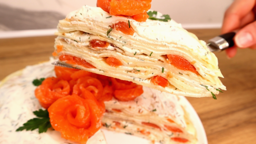 Не думала, что торт с рыбой может быть вкуснее сладкого! Сытный, вкусный блинный торт. Идеально к масленице