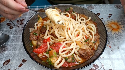 ЛАГМАН.Очень вкусный лагман из говядины в казане.