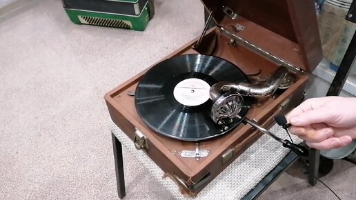 Советская кинокамера и патефон начала прошлого века. Все в отличном состоянии в антикварном магазине