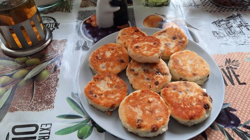 Сырники творожные с изюмом.